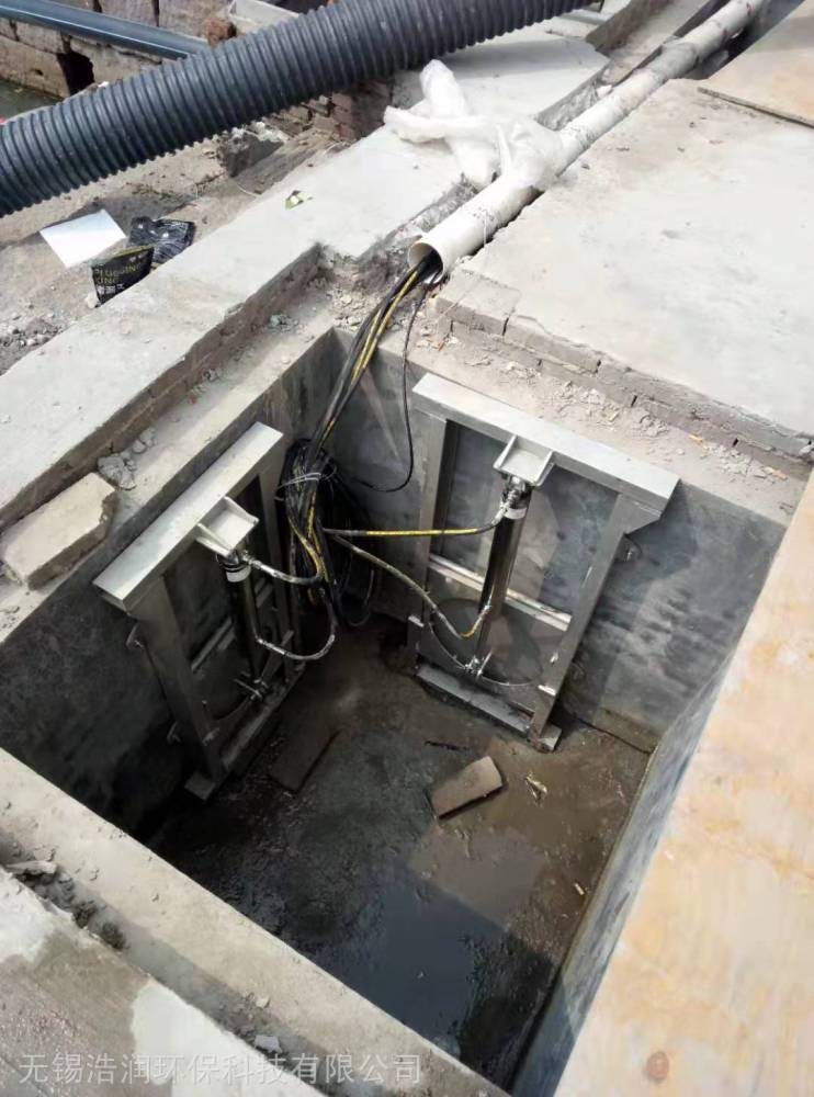 开口类(一般宽度大于2000,调节范围一般小于800,三边止水,且前后有操作空间的场合)宜选用TYX型旋转堰门,其安装结构分池内、池外两种,由于启闭机的固定需采用铰支式结构,故前后需一定操作空间。